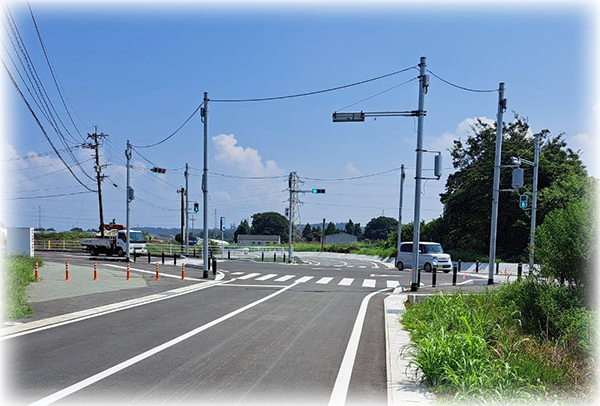 | 戸島町1号線(桃尾墓園入口) 交差点改良工事完成(令和7年) 県道益城菊陽線との交差点を安心して渡れます。 |