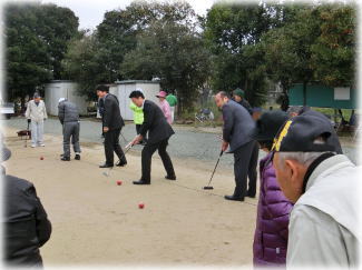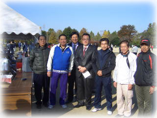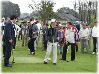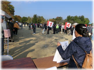 | グラウンド・ゴルフ大会開会式 | 飛び入りの尾上親方(元小結浜ノ嶋・中央)と | ||||||||||||||||||||||||||||