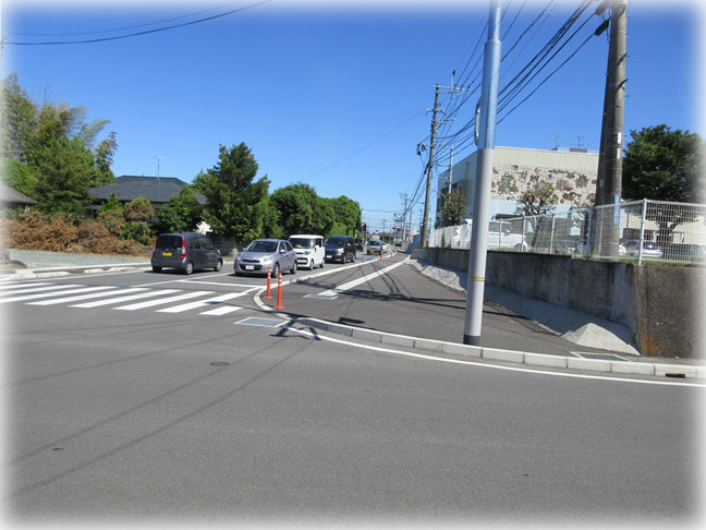 | 戸島町1号線(桃尾墓園入口) 交差点改良工事完成(令和7年) 県道益城菊陽線との交差点を安心して渡れます。 |